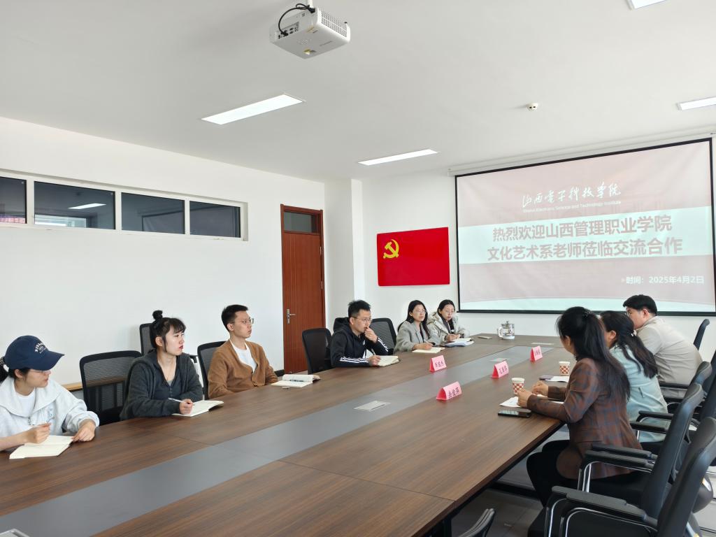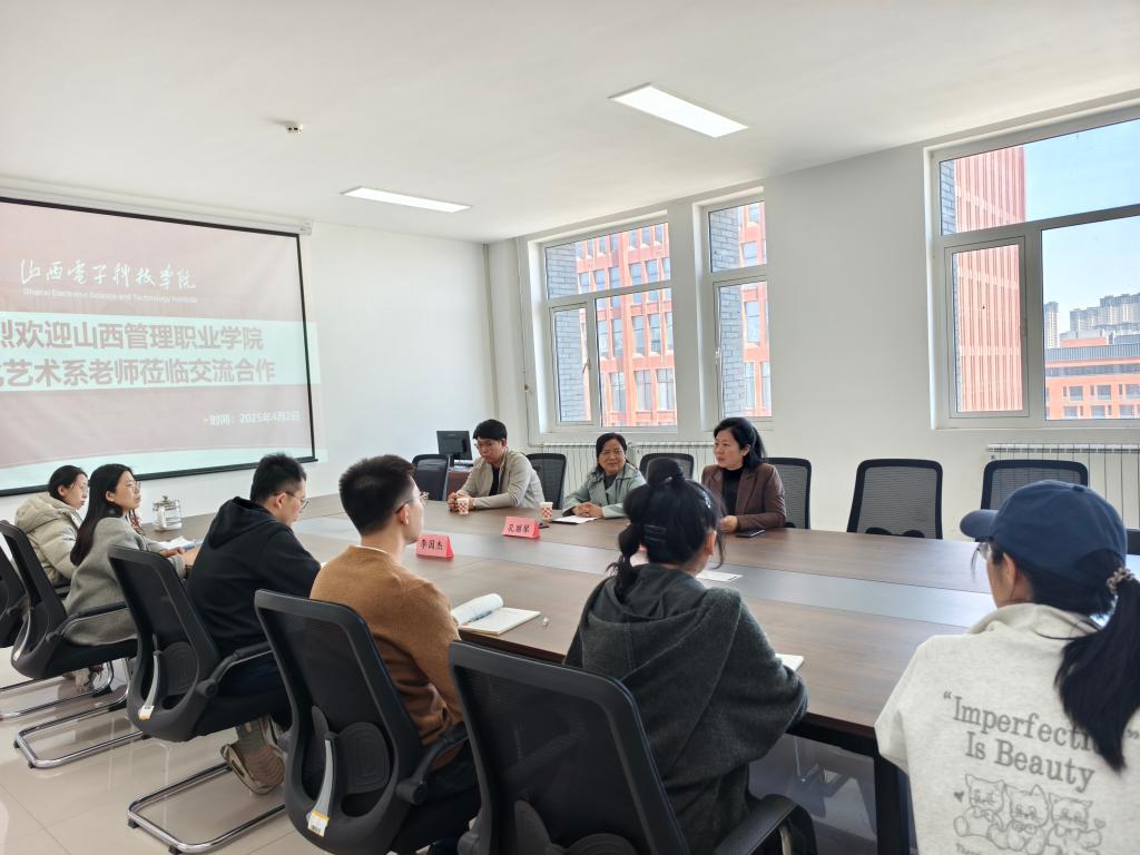 2025年4月3日上午,为深入贯彻落实国家关于深化产教融合、服务地方经济发展的战略部署,加强高校间的协同创新与合作交流,山西管理职业公司文化艺术系党委书记孔丽琴、副主任岳俊萍、教师王翰基一行人莅临公司,与艺术与设计公司负责人李因杰及部分教师进行了深入的交流研讨。