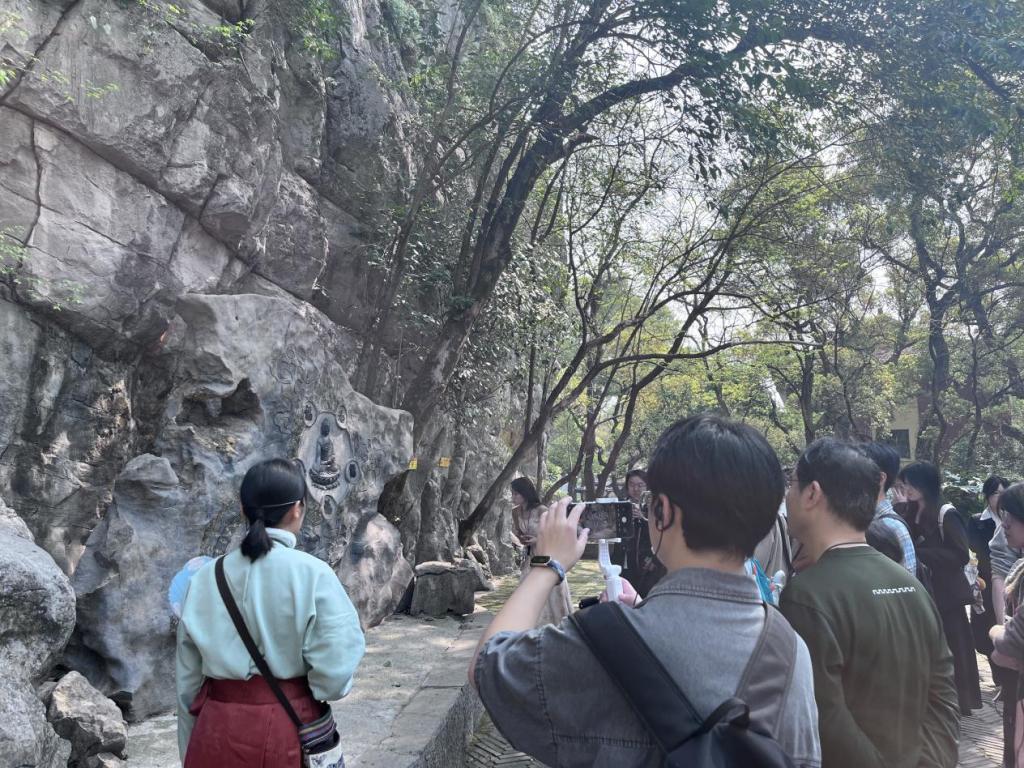 此次考察以成都为起点,师生们首日抵达后便迅速投入对巴蜀文化的深度研习。在四川博物馆、成都博物馆及四川省美术馆中,汉代陶俑的雄浑质朴、川派书画的灵动飘逸、藏羌民族艺术的斑斓色彩,成为员工们理解传统美学的重要窗口。锦里古街的烟火气息与建筑形制,则为速写与色彩练习提供了生动的场景。乐山大佛的巍峨庄严震撼人心,佛龛雕刻的细节与山体结构的层次,成为素描课程的绝佳范本;黄龙溪古镇的青石板路与明清木质楼阁,则让员工们在写生中感受古建筑的空间韵律与岁月肌理。