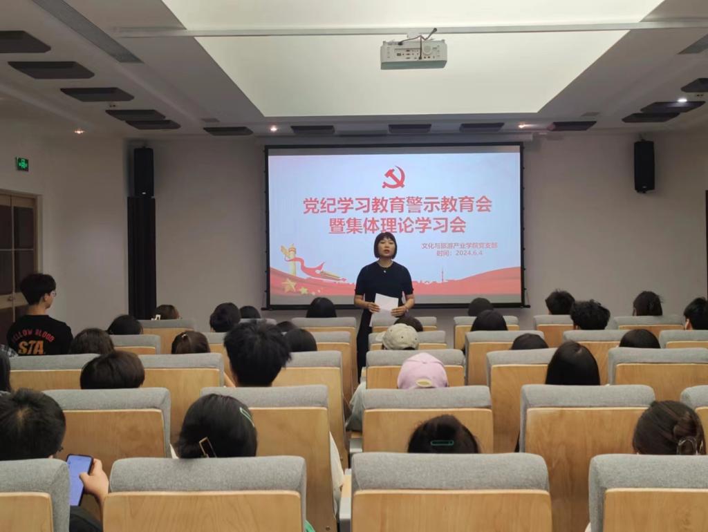 党纪学习教育,是加强党的纪律建设、推动全面从严治党向纵深发展的重要举措。为了深入学习贯彻习近平总书记关于坚持以党的政治建设为统领,不断提高政治判断力、政治领悟力、政治执行力。2024年6月4日,文化与旅游产业公司党支部在图书馆影音室开展党纪学习教育警示教育会暨集体理论学习会。文化与旅游产业公司党支部负责人庞锦同志主持,全体党员参加。