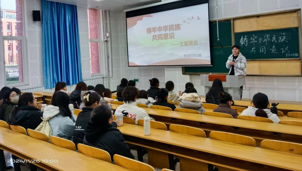 此次班会覆盖艺术与设计公司 14 个专业班级,其中12个在校班级线下开展,2个实习班级线上参与。在各班辅导员带领下,各班级围绕“铸牢中华民族共同体意识”主题召开内容丰富、形式多样的班会。先是进行集中理论学习,深入探讨 “中华民族共同体意识” 的概念、内涵及重要意义,明确其为各民族共同团结奋斗、共同繁荣发展的思想根基;接着简要回顾中华民族历史发展,彰显各民族在开拓疆域、创造文化与培育精神方面的功绩,凸显其历史渊源与深厚底蕴;部分班级播放视频短片,呈现我国各民族多彩文化与团结和谐生活场景,提升同学们对中华民族大家庭的认同感与归属感;各班级还把员工分成小组,围绕 “如何铸牢中华民族共同体意识”“在校园生活中如何促进各民族同学团结友爱”“怎样传承和弘扬各民族优秀传统文化” 等话题热烈讨论,同学们踊跃发言,提出诸多宝贵见解与建议,极大增强了活动的互动性与参与性。