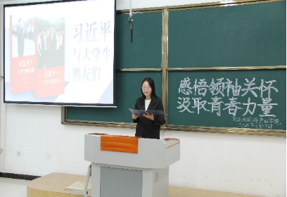 活动伊始,主持人阐述了新时代的青年要谨记习近平总书记教导,坚定理想信念、锤炼高尚品德,增强责任感和使命感;随后,观看了《习近平与老员工们》简介视频,同学们更加深入地体会到习近平总书记对青年工作的关注,更好地让老员工感受到党和国家领导人对青年群体的关心、重视与期望;接着邀请同学们上台分享学习心得,他们结合自己的感受谈了青年人的责任和担当,以及如何在新时代里努力学习。大家纷纷表示在通读此书后更加明晰了青年一代在推动社会发展进程中所承担的重要角色;最后,主持人进行活动总结,表示同学们要深刻领悟书中的思想精髓,将其转化为行动指南,努力成为堪当民族复兴重任的时代新人。