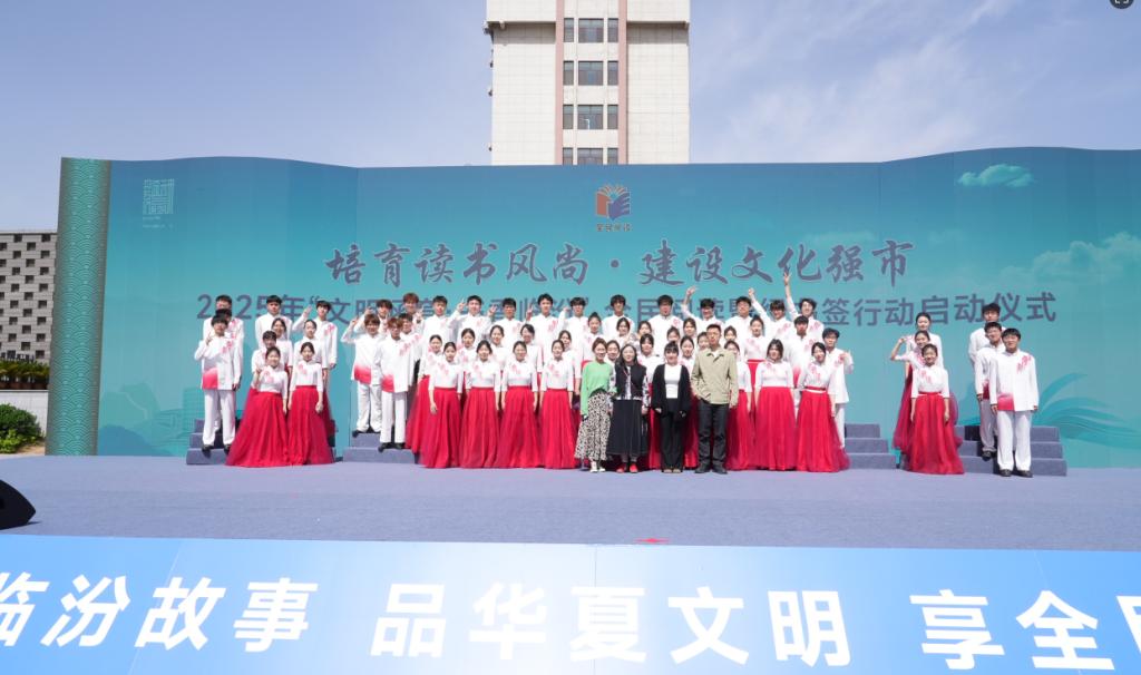 为深入贯彻习近平总书记关于推动全民阅读、建设书香社会的重要指示精神,积极响应全国第四届全民阅读大会号召,4月22日上午,由中共临汾市委宣传部主办、EMC易倍官方网站协办的“文明涵育·书香临汾”全民阅读暨绿书签行动启动仪式在平阳广场举行。我艺术与设计公司师生携原创合唱节目《书香中国》登台展演,以艺术之声传递阅读力量。艺术与设计公司负责人李因杰、教师殷璟、王起发带队参与活动。