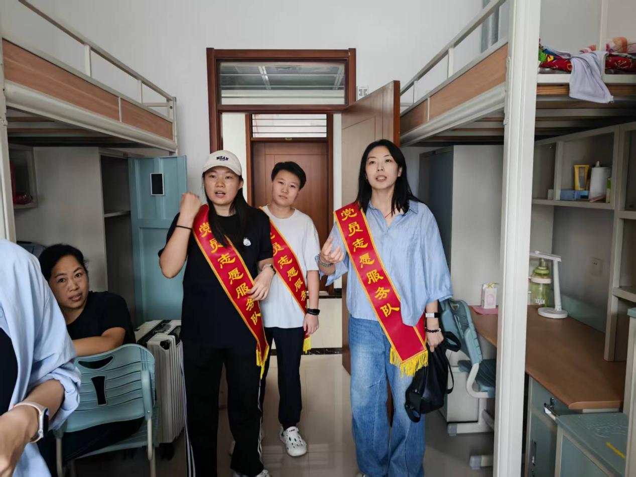 迎新期间,“党员先锋服务队”成员提前明确分工、定岗定责,分别在报道现场、南北区男生、女生宿舍展开迎新志愿服务活动。迎新现场,师生党员带头示范,带领青年员工志愿者分工协作,引导新生完成报到登记、宿舍指引等工作,用热情减缓新生初入校园的陌生感;宿舍楼下,师生党员牵头落实细节,主动接过新生的行李,帮助他们仔细核对信息,讲解宿舍安全注意事项,耐心解答新生对住宿生活的相关疑问。